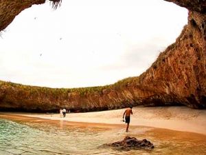 La Playa Nopalera es una joya oculta dentro del Parque Nacional Islas Marietas. Rodeada de formaciones volcánicas, esta playa virgen de arena blanca y aguas cristalinas ofrece una experiencia tranquila y en contacto con la naturaleza.